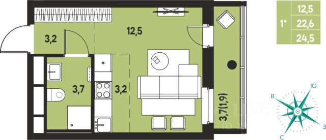 Продается квартира-студия площадью 24.2 кв. м. Ремонт от застройщика. Были заменены счетчики воды и кран в санузле. В квартире остается мебель и бытовая техника. Окна выходят на восточную сторону, в первой половине дня в квартире очень солнечно. Вид на парковку. Рядом в наличии супермаркеты, детская площадка. В микрорайоне находятся детский сад, школа, больница. Один собственник. Квартира без обременений.
