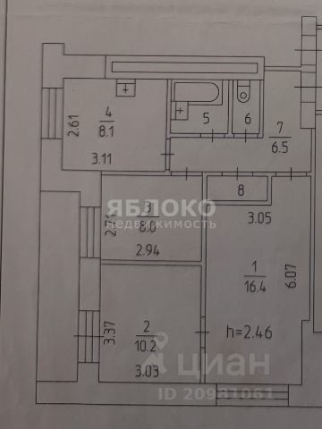 Комната 17,5 кв. м., зона кухни 5,3 кв. м., коридор 4,2 кв. м., санузел 3,4 кв. м.