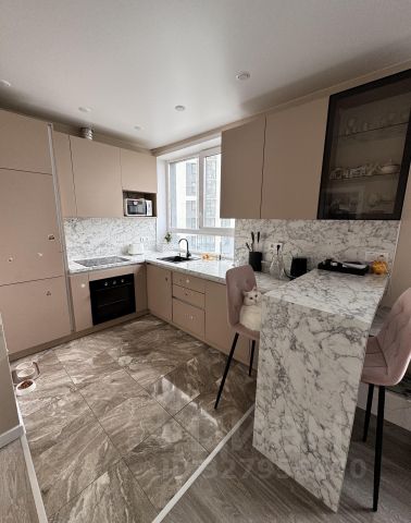 В кухне-гостиной -кухонный гарнитур производства Италии, премиум сегмента, со встроенной техникой (посудомоечная машина, электрический духовой шкаф, вытяжка, газовая панель - фирмы ARISTON). Столешница искусственный камень. Кондиционер MITSUBISHI.