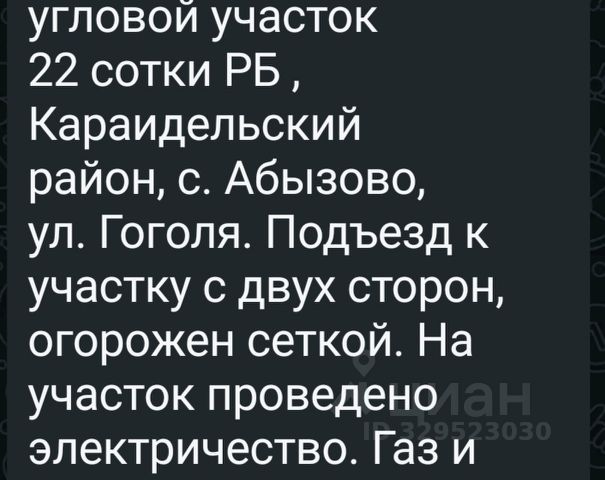 Продаётся земельный участок в экологически чистом и живописном Караидельском районе, деревня Муллакаево. Первая береговая линия, рядом впадают две реки Тюй и Сарс. В шаговой доступности есть родник "Изге Чишмэ". Имеется сруб 5 на 5,5. Один собственник, плошадь 26,5 соток. Земля значения ЛПХ. Отлично подойдёт как для строительства жилого дома, так и для производства сельскохозяйственной продукции личного потребления. Торг уместен