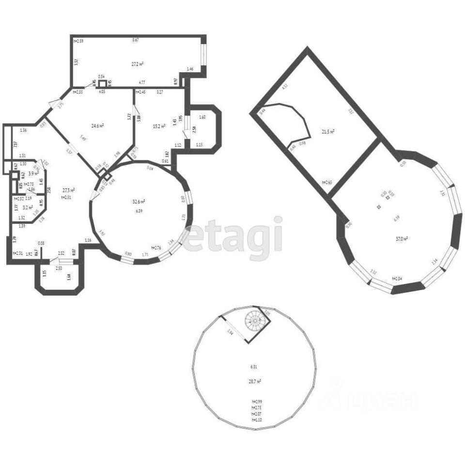 Общая площадь 221,2 м2, состоит 8 помещений и находится на 3-х уровнях. Основные помещения - на 1 уровне: холл, 3 кабинета, кухня, санузел, душ. На 2 уровне 2 помещения и 3 уровень - это стеклянный купол.