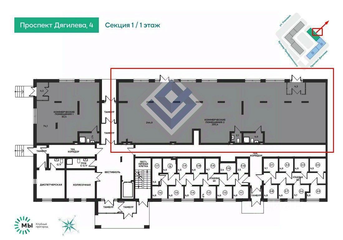 Предлагается к долгосрочной аренде помещение 249,9 кв.м. в активно развивающемся ЖК "МЫ"