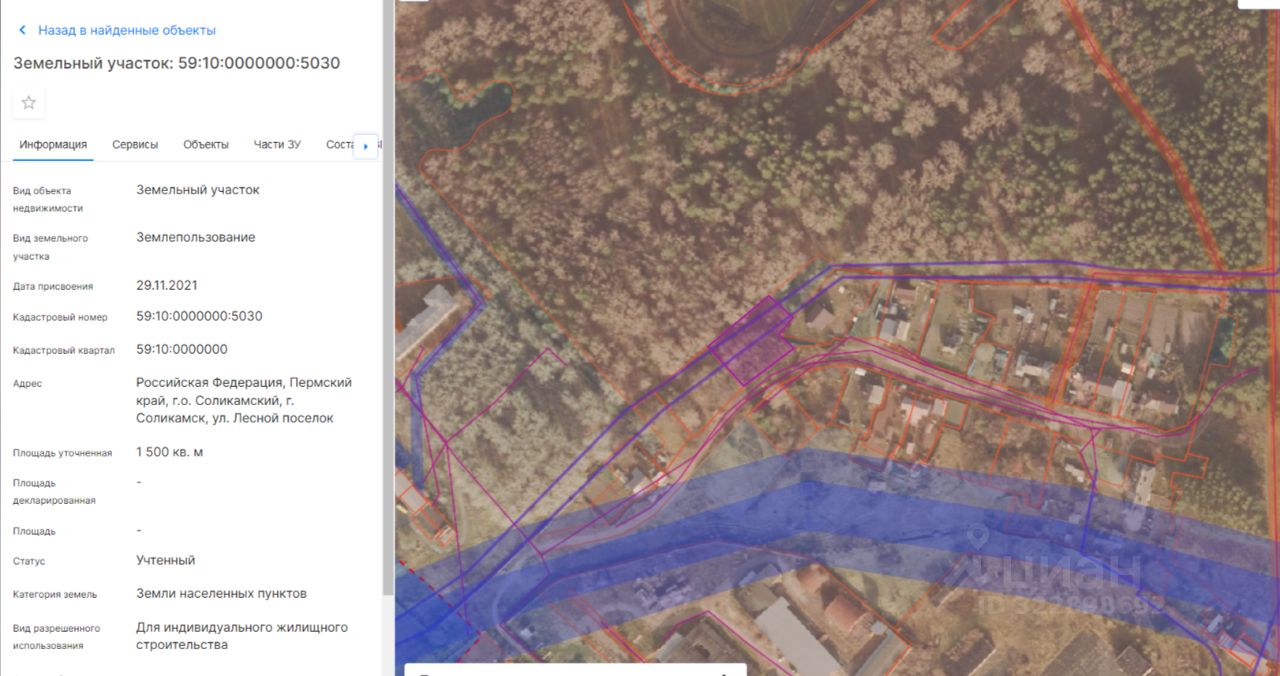 Электронный аукцион на право заключения договора аренды земельного участка, расположенного на землях населенных пунктов, по адресу: Российская Федерация, Пермский край, г.о. Соликамский, г. Соликамск, ул. Лесной поселок, с кадастровым номером 59:10:0000000:5030, площадью 1500 кв.м, в том числе площадь 200 кв.м - ОХРАННАЯ ЗОНА КАБЕЛЬНЫХ ЛИНИЙ, ВОЗДУШНЫХ ЛИНИЙ 6/10 кВ ЭЛЕКТРОСЕТЕВОЙ КОМПЛЕКС (ЭСК) ГПП-1 (реестровый номер границы: 59:00-6.64), площадь 11 кв.м - публичный сервитут на основании постановления об установлении публичного сервитута от 22.01.2025 109-па (реестровый номер границы: 59:10:0000000-17.47), с видом разрешенного использования: для индивидуального жилищного строительства.