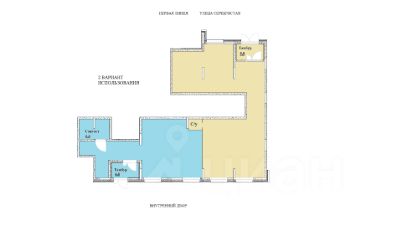 2. Два зала /кабинета общей площадью около 90 кв.м. Отдельный вход с улицы Серебристая. На планировках выделен жёлтым и фиолетовым цветами.