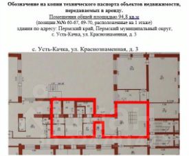 Аренда нежилых помещений (зданий, сооружений) общей площадью 957 кв.м., в т.ч.:- нежилые помещения (здания, сооружения) общей площадью 485 кв.м. в здании Арендодателя по адресу: Пермский край, Пермский м.о., с. Усть-Качка, ул. Краснознаменная, д. 5;- нежилые помещения (здания, сооружения) общей площадью 94,8 кв.м. в здании Арендодателя по адресу: Пермский край, Пермский м.о., с. Усть-Качка, ул. Краснознаменная, д. 3;- нежилые помещения (здания, сооружения) общей площадью 120,8 кв.м. в здании Арендодателя по адресу: Пермский край, Пермский м.о., п. Красный Восход, ул. Садовая, д. 12;- нежилые помещения (здания, сооружения) общей площадью 127,8 кв.м. в здании Арендодателя по адресу: Пермский край, Пермский м.о., д. Горшки, ул. Школьная, д.4;- нежилые помещения (здания, сооружения) общей площадью 128,6 кв.м. в здании Арендодателя по адресу: Пермский край, Пермский м.о., д. Горшки, ул. Школьная, д.4В.