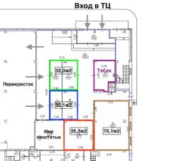 Первая линия входной группы.Якорный арендатор - крупная торговая сеть.Помещение подходит под общепит (имеется вентиляция), офис, аптеку, отдел продаж, торговое назначение, услуги.Возможно деление площади от 28 кв.м.