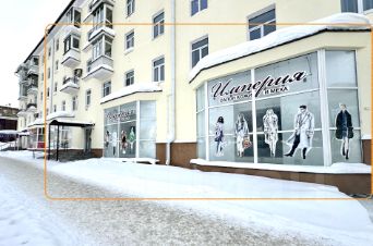 Вход в помещение и 2 панорамные витрины - расположены с ул. Пятилетки.