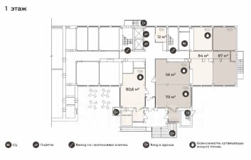 Преимущества помещения:Отлично подходит под кафе, столовую, общепит.Первый этаж.Два входа, отдельный вход и вход с 1 этажа бизнес-центра.Гибкая перепланировка под нужды арендаторов.Возможность индивидуальной отделки. Возможность организации мокрой точки.