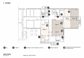 БЦ "Крылов" — экосистема роста:Трафик: у ЖК "Данилиха" (10 000 жителей) — ноль конкуренции!Сервис: сервис менеджер, запланированы переговорки, кухни, обустроенная зона отдыха на крыше.Комфорт: парковка 60 мест, новые лифты, высокоскоростной интернет, фильтрованная питьевая вода.Локация: центр города, берег р. Данилиха (КрисановаКрылова). Шаговая доступность до улиц Ленина и Шоссе Космонавтов.