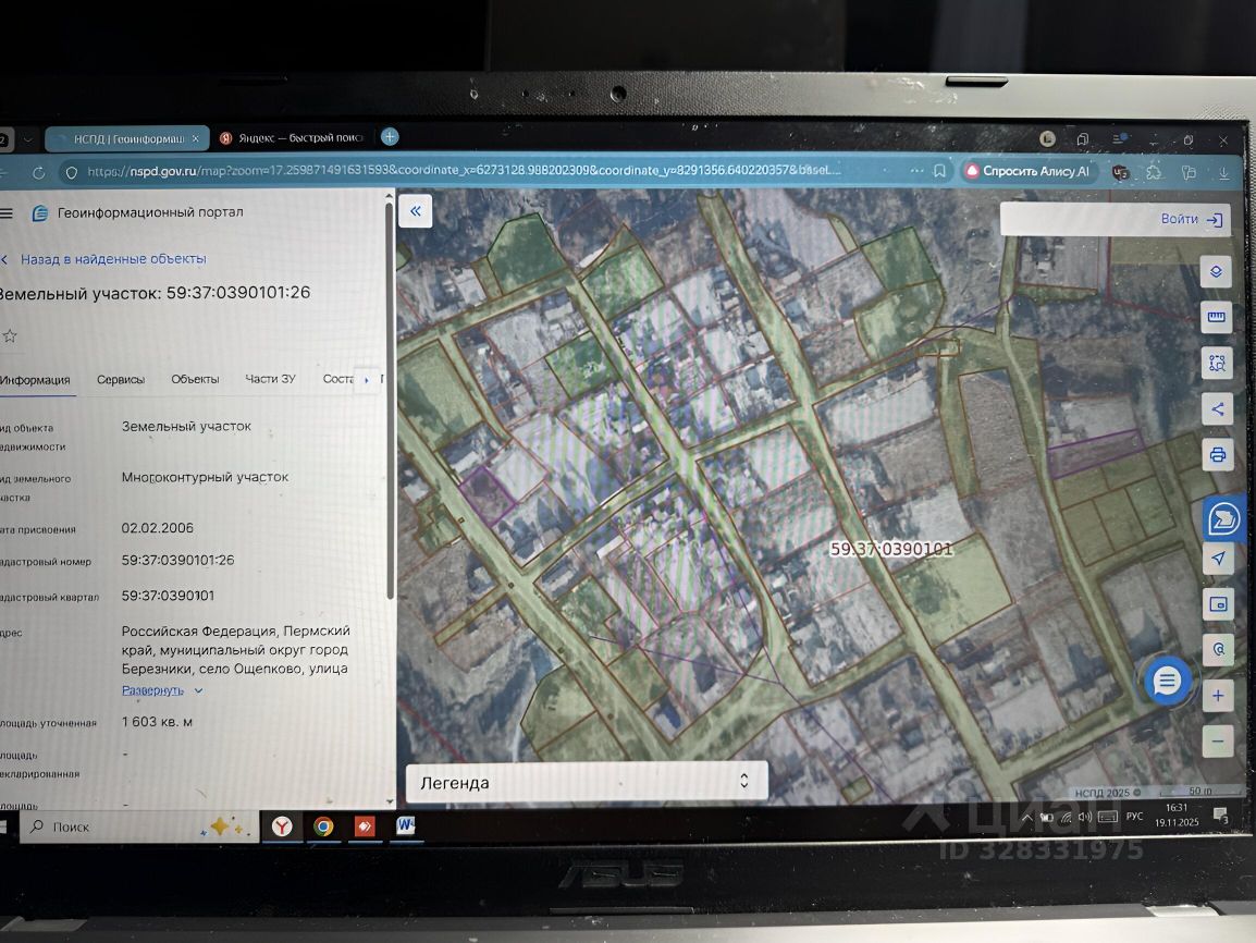 Право заключения договора аренды земельного участка (категория земель земли населенных пунктов) с кадастровым номером 59:37:0390101:26 площадью 1603 кв.м, основной вид разрешенного использования для ведения личного подсобного хозяйства (приусадебный земельный участок) по адресу: Пермский край, Муниципальный округ город Березники, село Ощепково, улица Школьная, з/у 9/2. Срок аренды 20 лет.