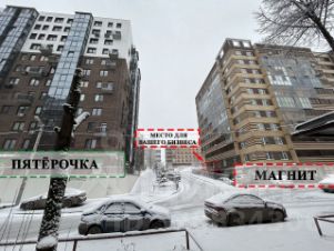 Плотная многоэтажная жилая застройка, рядом две крупные федеральные сети гарантированный пешеходный трафик. Бесплатная парковка на улице.