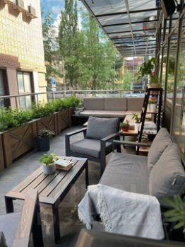 Площадь 248 м² на 3 этаже. Панорамные окна и панорамная терраса. Высота потолков 3 метра. Помещение полностью меблировано, планировка смешанная кабинетная и открытая. Выполнена офисная отделка. В наличии два личных санузла и кухня.