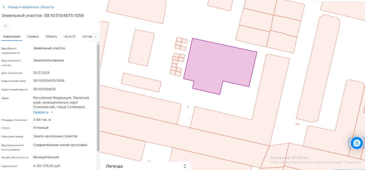 Электронный аукцион на право заключения договора аренды земельного участка с кадастровым номером 59:10:0104015:1059, площадью 3847 кв.м, с видом разрешенного использования: среднеэтажная жилая застройка, расположенного на землях населенных пунктов, по адресу: Российская Федерация, Пермский край, муниципальный округ Соликамский, город Соликамск, улица Свободы