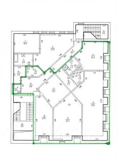 Планировка: просторная прихожая с санузлом для гостей, приемная с домофоном и камерами, три отдельных входа из приемной в комнаты. Комната офисного типа (переговорная или помещение для персонала/посетителей), просторный парадный зал (кабинет директора или зал для сессий/мероприятий), рабочий офис для персонала с отдельным санузлом и душевой, комната отдыха с кухонным блоком, диваном и отдельным санузлом с душевой.
