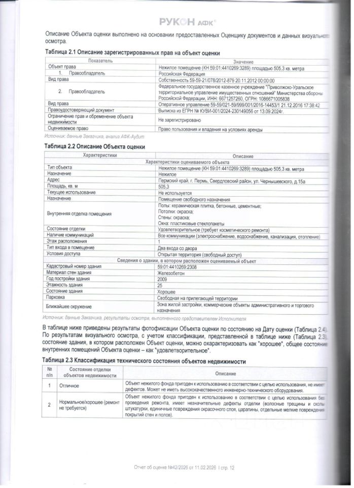 Право заключения договора аренды федерального недвижимого имущества: нежилое помещение (кадастровый номер 59:01:4410269:3289) площадью 505,3 кв. метра, расположенное на 1 этаже здания по адресу: Пермский край, г. Пермь, Свердловский район, ул. Чернышевского, д. 15а.