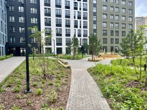 Большая парковка, двор без машин, магазины в доме, современная детская площадка и зона отдыха во дворе, кофейный аппарат в подъезде