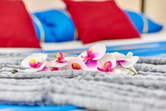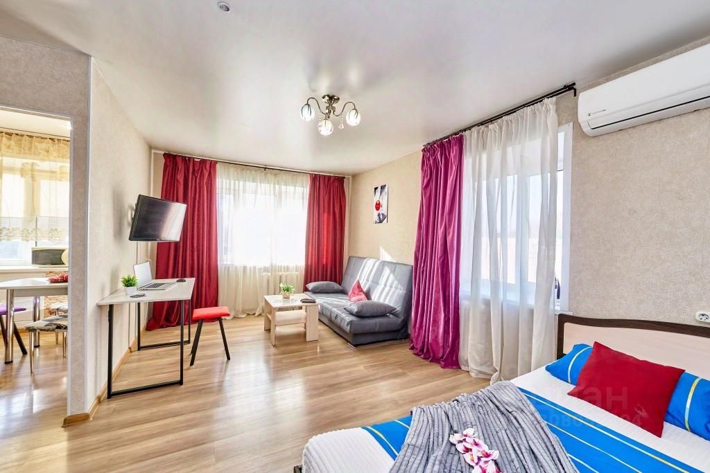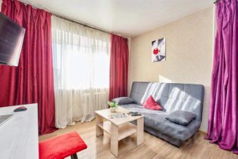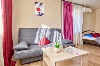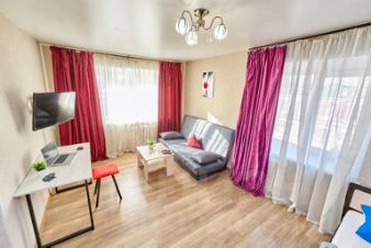 В квартире предусмотрено: двуспальная кровать, раскладной диван, раскладушка, телевизор с функцией Smart TV, шкаф, напольная вешалка, утюг, гладильная доска, пылесос, кондиционер, высокоскоростной Wi-Fi.