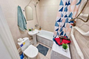В ванне — совмещённый санузел с ванной, душем, стиральной машиной, феном, средствами гигиены и стиральным порошком.