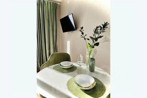 Небольшая, светлая, современная студия отвечает основным требованиям бывалого путешественника и делового человека. В комнате широкая кровать для двоих человек, торшер, телевизор со СМАРТ ТВ. Любимые гостями кабельные каналы создадут домашнюю атмосферу. Функционирует Wi-Fi. Небольшой кухонный уголок оснащен всем необходимым для современной кухни: электрическая варочная поверхность, микроволновая печь, электрочайник, кухонная утварь и столовая посуда. Небольшой кухонный столик и стулья дополняют кухонную часть комнаты. К услугам постояльцев имеется стиральная машина.