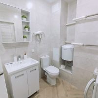 Имеется вся необходимая бытовая техника (холодильник, стиральная машина, фен, утюг, чайник, микроволновая печь).