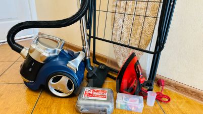 - Бытовая техника (3 телевизора, стиральная машина, холодильник, свч печь, газовая плита, фильтр для воды, утюг, фен) гладильная доска, сушилка.
