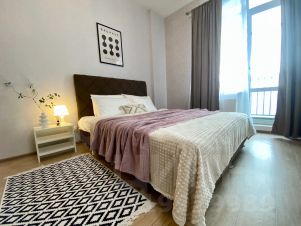Квартира находится в новом жилом комплексе, в центре города. Рядом парковка, остановки транспорта, в доме Пятерочка (24 часа), с соседнем здании кафе.