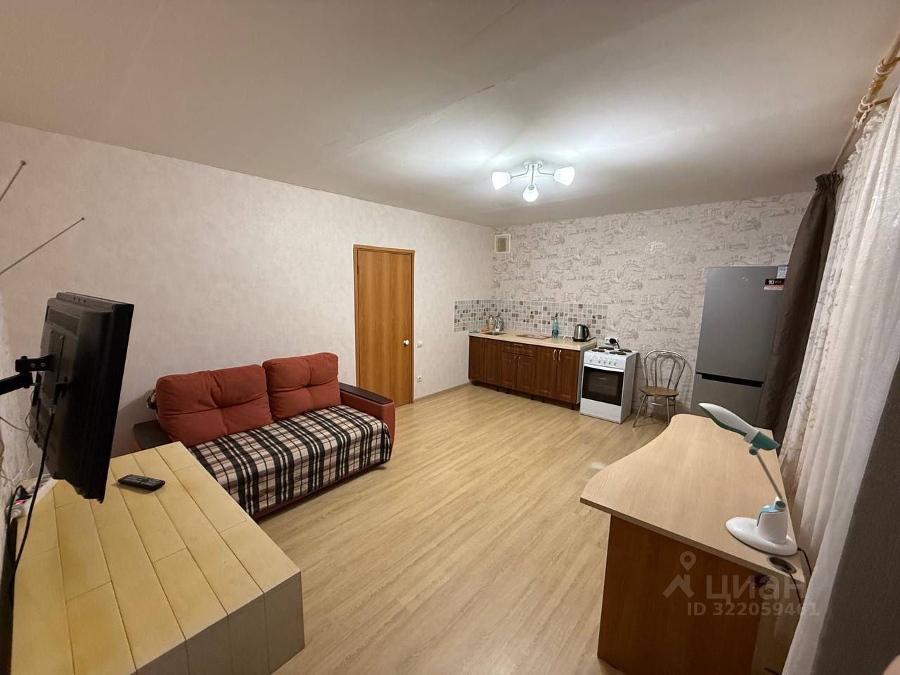 В квартире сделан косметический ремонт, есть вся необходимая мебель и техника для комфортного проживания. Удобная планировка студии включает в себя совмещённый санузел с ванной. В вашем распоряжении будет холодильник, телевизор и стиральная машина.