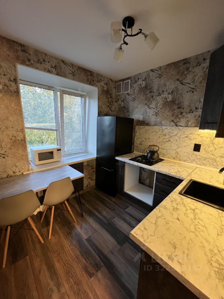 Кухня: плита, микроволновка, холодильник, стол, 2 стула