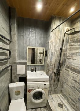• Ванная комната: Современная и стильная. Есть душевая кабина, туалет, умывальник, полотенцесушитель и стиральная машина.