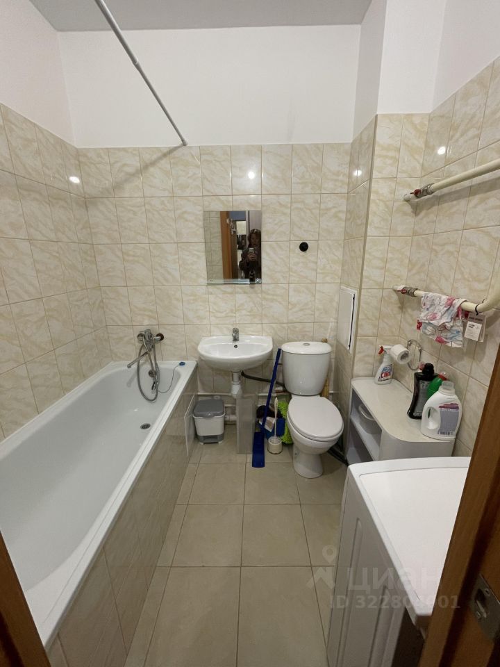 В квартире выполнен косметический ремонт, что создаёт приятную атмосферу для проживания. Пространство студии грамотно организовано: есть мебель как на кухне, так и в комнате, что позволяет комфортно разместиться. Кухня оборудована необходимой техникой: холодильником и стиральной машиной. Санузел совмещённый и включает ванну, что особенно удобно для любителей расслабляющих процедур.
