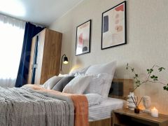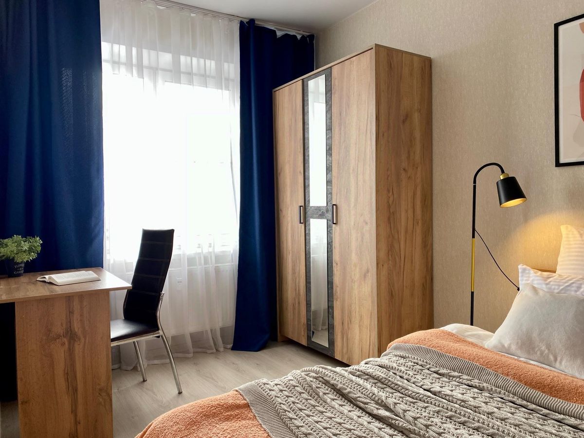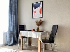 Квартира оборудована всем необходимым для вашего комфортного проживания: двуспальная кровать, односпальное раскладное кресло. Большой телевизор со Smart TV, место для работы за ноутбуком. Кухонный гарнитур, вся посуда и кухонная техника. Водонагреватель, фен, утюг, гладильная доска