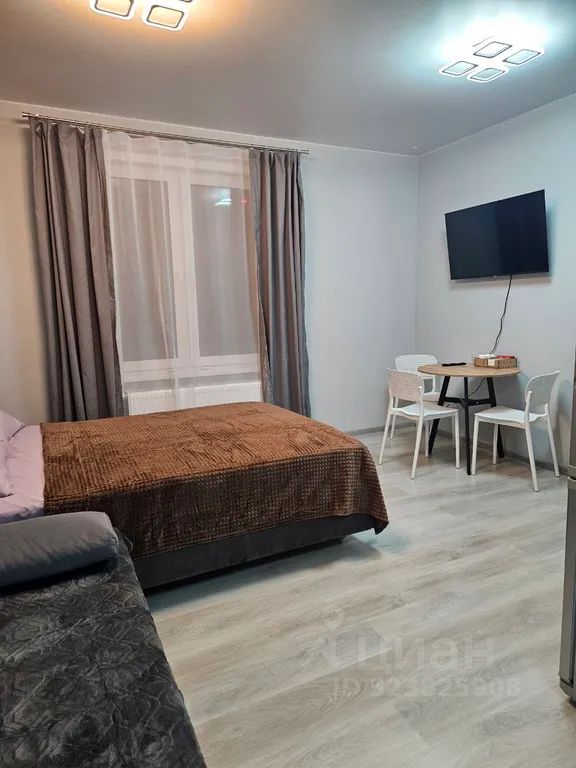 Просторная студия в новом жилом комплексе "Красное яблоко" с небольшим залогом, который возвращается после выезда. Гарантия фото и реального состояния квартиры 100%.