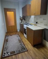 Обстановка: кухоный гарнитур (3 навесных шкафа, 2 напольных шкафа, мойка), эл.плита, ванная (ванна, занавеска, унитаз, раковина, зеркало с полкой), напольная тумба со шкафчиком, шкаф-пенал для одежды, гардины, надежная дверь, домофон, до 3х комплектов ключей, ТВ/интернет подключение самостоятельно.