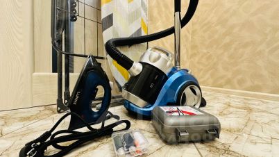- Бытовая техника (телевизор, стиральная машина, холодильник, СВЧ печь, индукционная плита, утюг, фен), гладильная доска, сушилка.