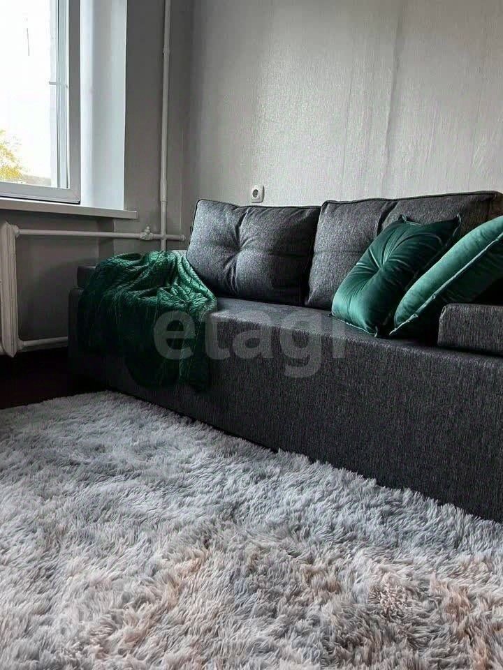 • Мебель: Вместительный шкаф, диван, уютный ковер, стильные зеленые подушки и плед. Для вещей есть отдельная кладовая.