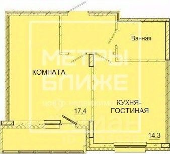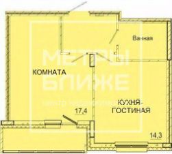 Комната 17,4 кв.м, просторная кухня-гостиная 14,3 кв.м. Большая застекленная лоджия. Качественный ремонт: ламинат, натяжной потолок.