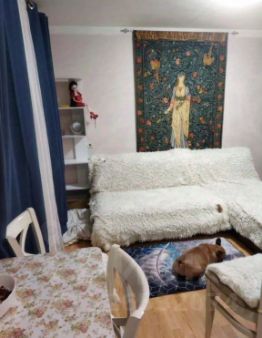 Из мебели есть все необходимое - кухня(кухонный стол, кухонный гарнитур), хранение одежды(шкафы, тумбы), спальные места(двуспальный диван).