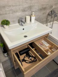 Ванная комната с принадлежностями для душа и гигиены