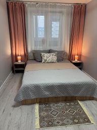 Магазин Магнит и аптека в соседнем доме, в 3х минутах ходьбы небольшой торговый центр, где есть кафе, пекарни, суши бар, бургерная, кофейня, цветочный, магазин Монетка, остановка городского транспорта в 5 минутах ходьбы , до города ехать на нем 20 минут.