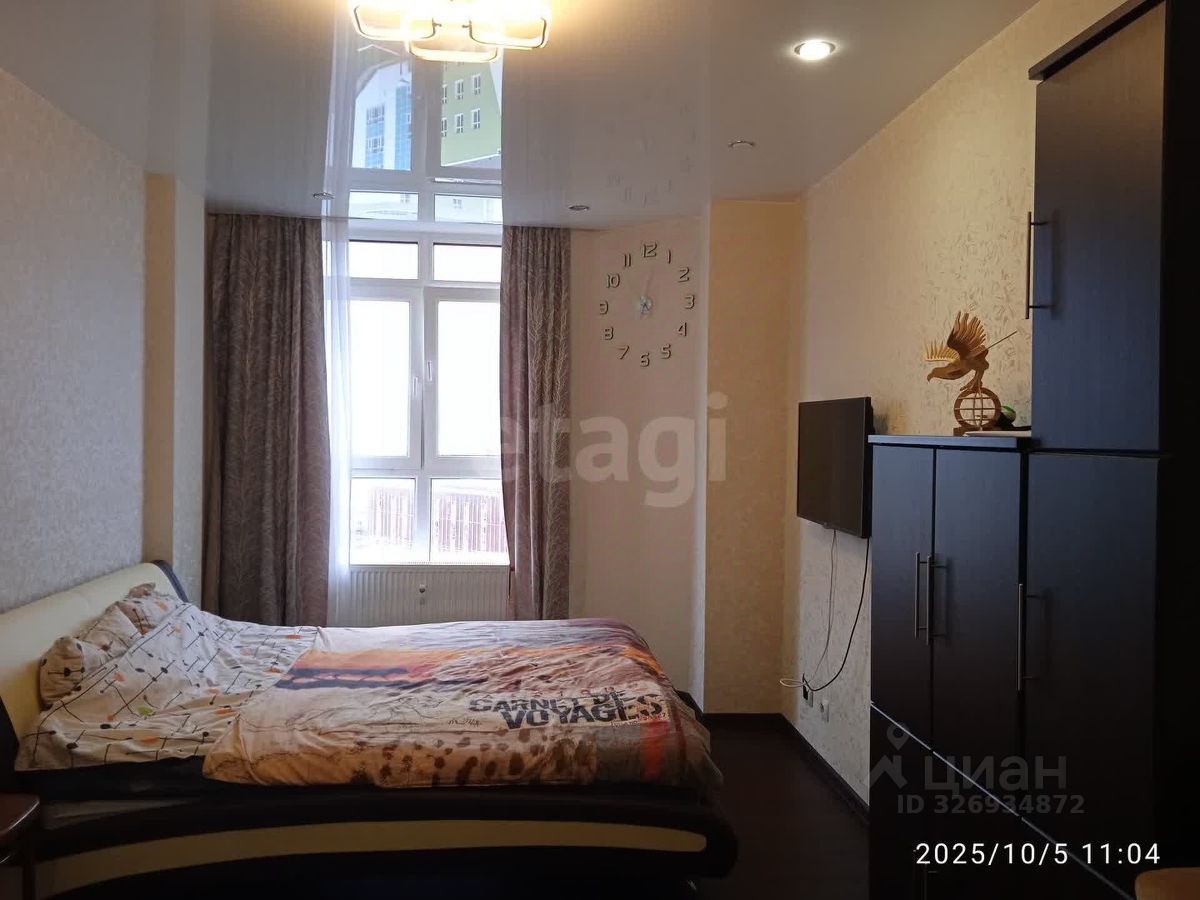 Ключевыми преимуществами являются панорамные окна в спальне и выход на балкон с впечатляющим видом на город.