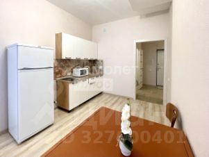 - Квартира оборудована всем необходимым для жизни: кухонный гарнитур с варочной панелью, холодильник, стол и стулья, большой шкаф в коридоре, кровать.