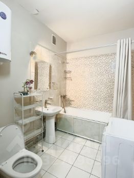 В санузле свежая сантехника, смесители, стеллаж и комод, оборудован навесными аксессуарами (для полотенец, мыла, стаканчики, крючки, ерш), стиральная машина, водонагреватель.