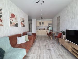 Уютная новая квартира формата "евродвушка" с современным функциональным ремонтом и качественным наполнением в ЖК Погода. Комфортно можно разместиться до 5 человек.