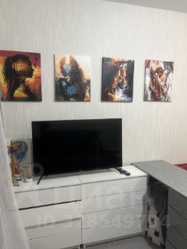 - уютная гостиная с мягким диваном и телевизором,