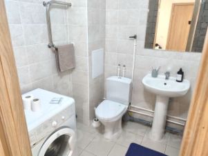 - стиральная машина, сушилка, гладильная доска, утюг, фен, постельное белье и полотенца