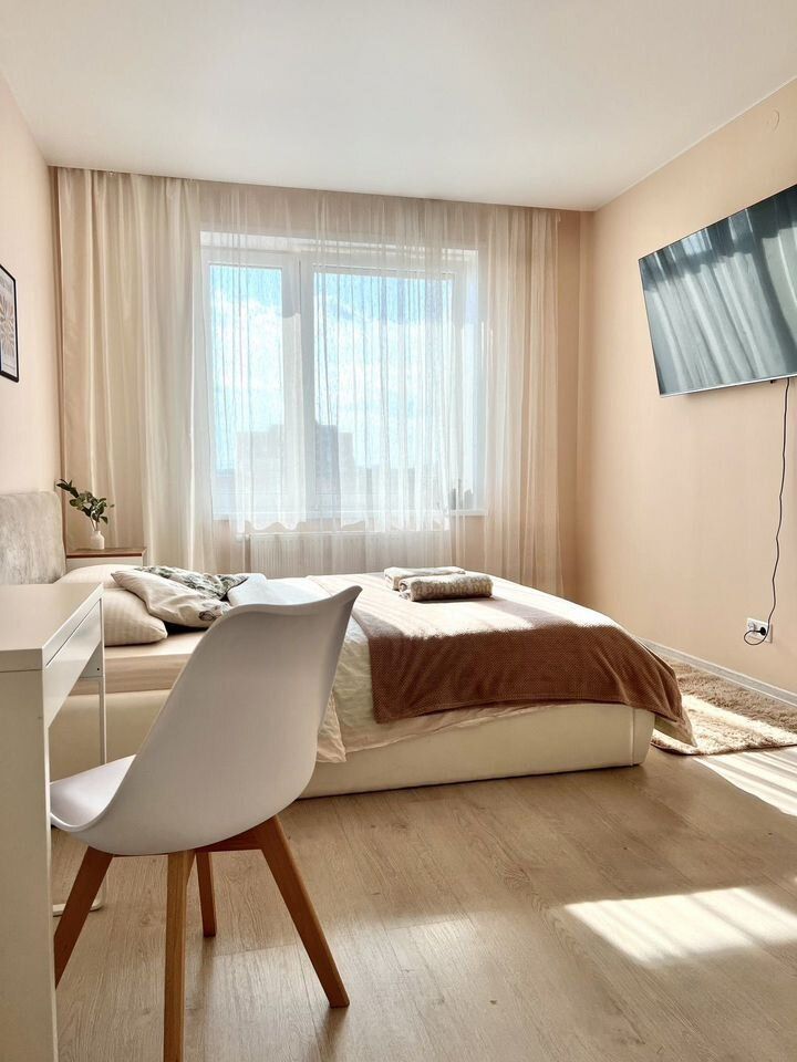 Шикарный вид из окна. На балконе есть уютная сhill-зона со столиком , вечерами можно наблюдать прекрасные закаты за чашечкой кофе.