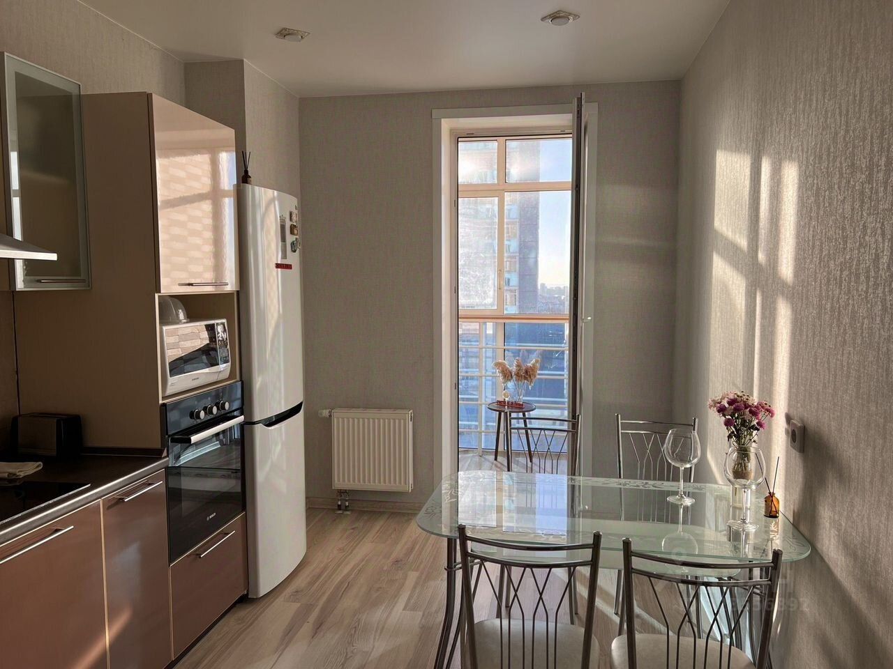 Шикарный вид из окна на р. Каму. На балконе уютный пуф, вечерами можно наблюдать необычайно прекрасные закаты.