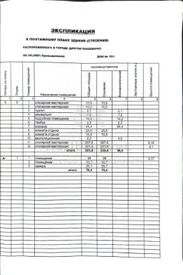 В продаже производственное отдельно стоящее здание, "Столярная мастерская", кадастровый 59:12:0010437:309. По адресу: Пермский край, г. Чайковский, ул. Промышленная 19Д, общая площадь помещения 591,8 м2. На земельном участке: кад., 59:12:0010437:27, площадью 688м2 и Кадастровый номер 59:12:0010437:43, площадь 344м2. Все объекты недвижимости в собственности! Здание 1998 года постройки имеет кирпичные несущие стены(красный кирпич), толщина 0,7 метра, на ленточном ж/б фундаменте, с ж/б перекрытиями и кровельным рубероидным покрытием на битумной мастике. Внутренняя отделка: штукатурка, побелка, покраска. Высота потолков от 3-х-5,5 метров. В здании имеется: электрический вход 380 вольт, 75кВт, возможность подключения газа 200 метров. В здании центральное водоснабжение, отопление, канализация, плюс индивидуальный септик на 7м3, имеется система вентиляции. В помещении окна ПВХ и дерево, глухие и распашные. Двери деревянные, ворота железные. Половое покрытие: доска, цемент, плитка. В здании имеется не менее 12 помещений из них 10 это подсобные и административные помещения и 5/6 общей площади занимают две столярные мастерские, 267,8м2 и 201м2. Износ здания по состоянию на 24 января 2005 года составляет 25%. Помещение мастерской обслуживается организациями: Водоканал, Пермэнергосбыт. Ежегодное обслуживание составляет 20 т.р./год. Основные конструктивные элементы здания в хорошем, рабочем состоянии. Во внутренних помещениях требуется ремонт. Здание Столярной мастерской находится в центре городской инфраструктуры, на второй линии от главной, транзитной городской дороги, соединяющей два основных района города, "Центральный" и "Уральская". Здесь сосредоточены центры торговли, строительства и промышленности. Вблизи известные объекты, такие как ТЦ "Аквареал", С-т "Гастроном", ТД "Ритм", строительный с-т "Добрострой". До центра города 3 км. К зданию ведут удобные подъездные пути с твердым покрытием. Помещение мастерской подойдёт для разных производственных сфер деятельности! Таких как: производство мебели, производство деталей, производство товаров народного потребления, станочные производства, деревообрабатывающие производства, пекарни, швейные мастерские, слесарные мастерские, автосервис, конструкторские бюро, складские помещения, распред. центр, торговля, оптовая торговля и многое другое. Занимаемся одобрением кредитов для бизнеса, страхование жизни и здоровья и всех форм собственности, авто страхование, страхование ответственности, ДМС. Уборка помещений, переезды, ремонты и строительство. Объект готов к продаже, документы проверены. Долгов и обременений нет, быстрая сделка. Возможен он. лан показ. Допускается разумный торг после осмотра. Все справки по телефону!