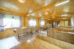 Для гостей функционирует красивая жаркая баня с комнатой отдыха и террасой. Также есть уютное и при этом вместительное кафе.