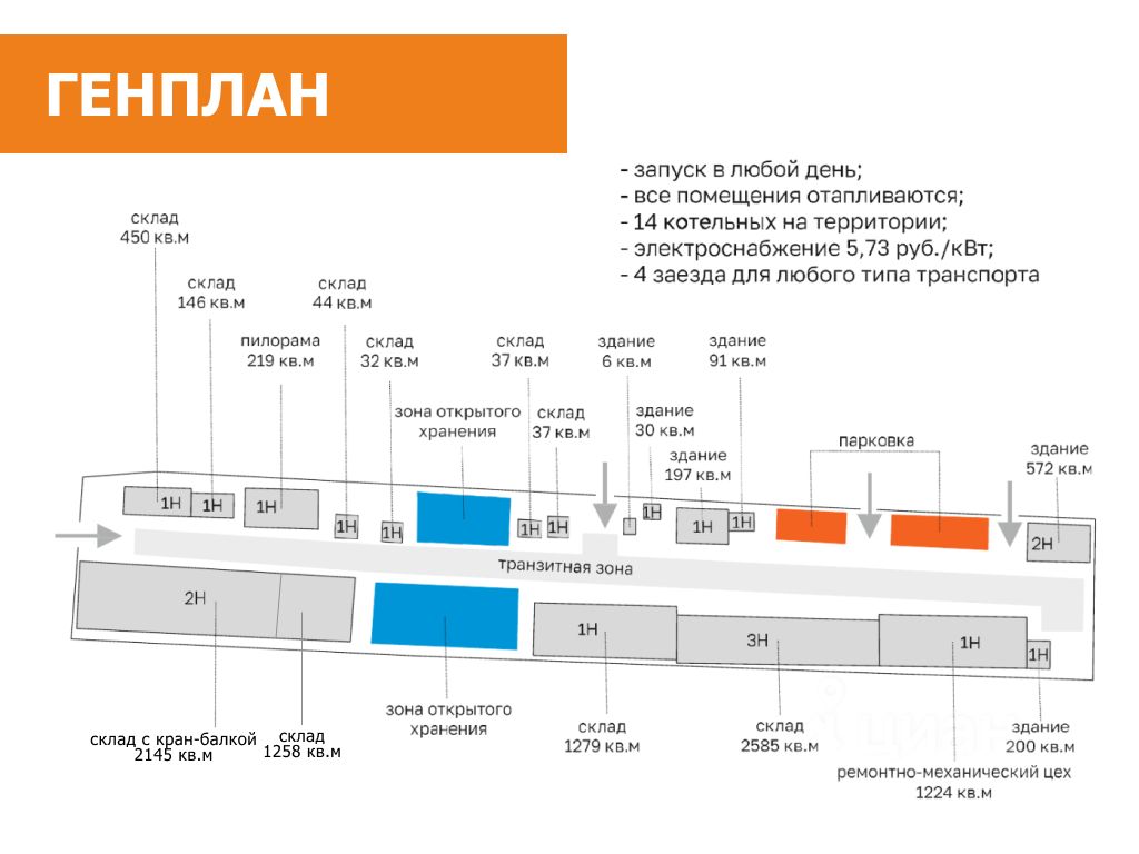 Локация: выгодное расположение в черте города, близость к транспортным развязкам и магистралям. 15 минут от центра города, 7 минут до трассы Пермь-Екатеринбург. 4 заезда для всех видов автомобилей, развитая логистика.